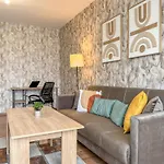 The spacious One-Bedroom Apartment Next To Mall Plovdiv With Free Street Parking offers proximity to such tourist attractions as the Mall Plovdiv, situated about 5 minutes' walk away. One of the highlights of this apartment is a terrace, which allows guests to take in mountain views.